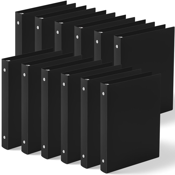Henoyso 12 Pcs 1 Inch Mini 3 Ring Binder, Fits 5.5" x 8.5" Paper, Three Round Rings Plastic Mini Binders for School, Office Use, Recipe Binder, Photo Album Pages(Black)