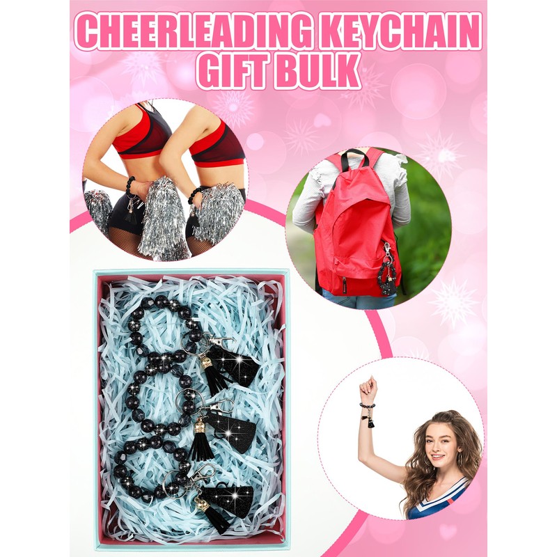 - Quality Craftsmanship: our cheer beaded wristlet keychains are primarily made with plastic beads and acrylic for durability; Whether it's competition day, a team party, or normal daily wear, these bracelets make for the ideal accessory to showcase your cheerleading passion as part of your outfit