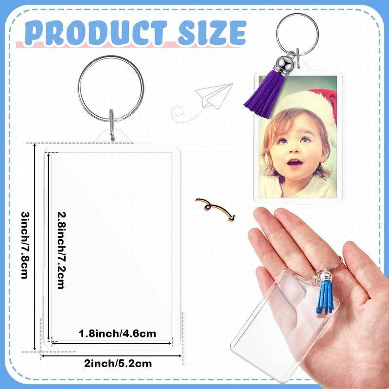 Henoyso 24 Sets Rectangle Acrylic Keychain Blanks Acrylic Photo Keychain Accessories with Keychain Tassels (2x3 Inch)