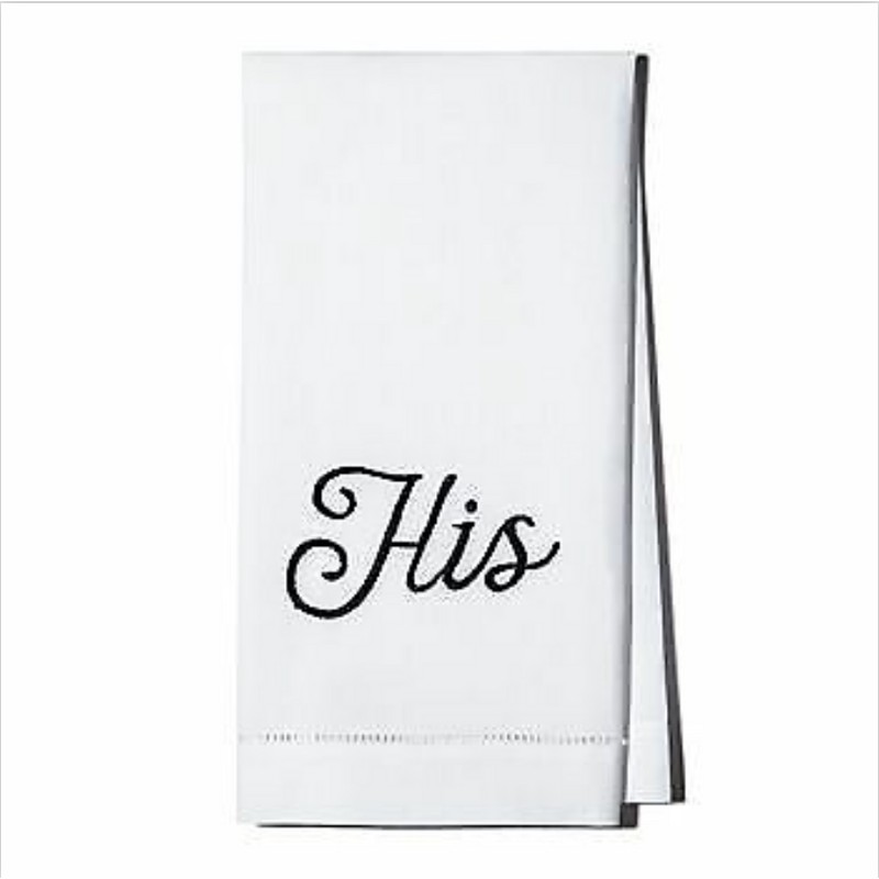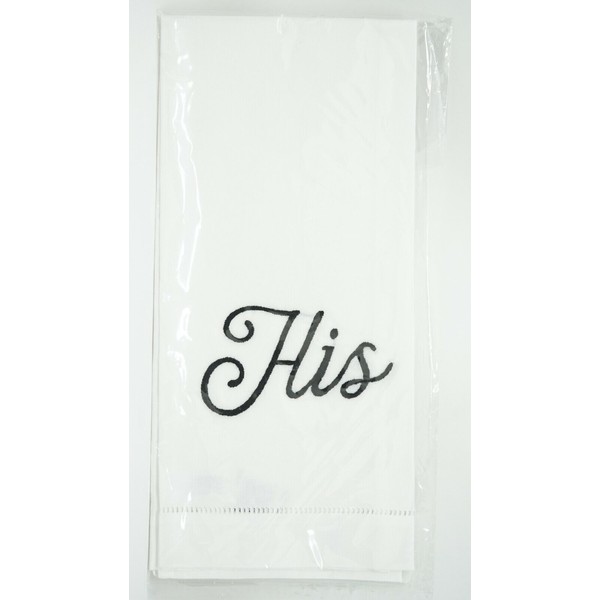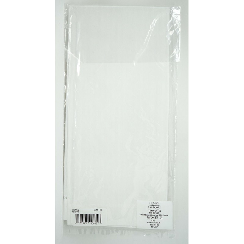 Henri Handwork Embroidered "His" Cursive 100% Cotton 16" x 24" Guest Towel White