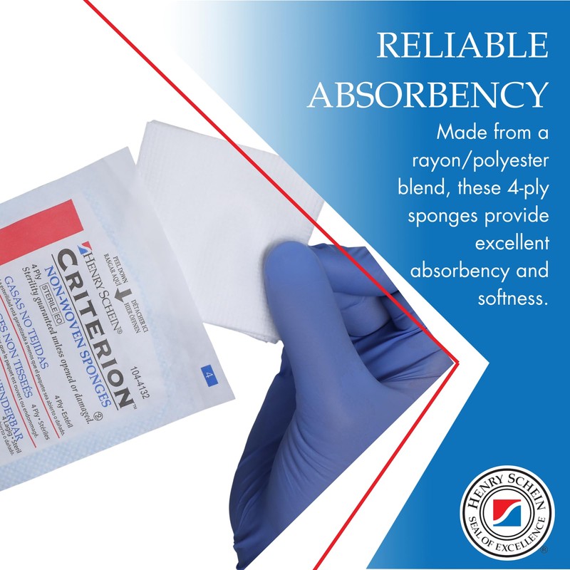Henry Schein Criterion 3x3” Non-Woven Sponge- Rayon/Polyester Blend, 4-Ply, Sterile- 48 Packs/CS. Total 2400 Counts 50/Pack