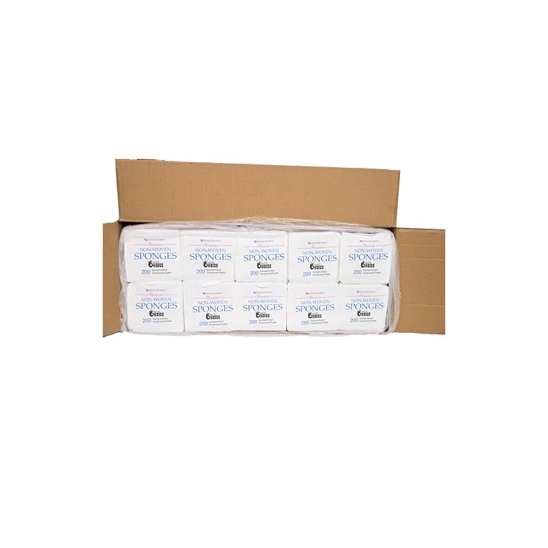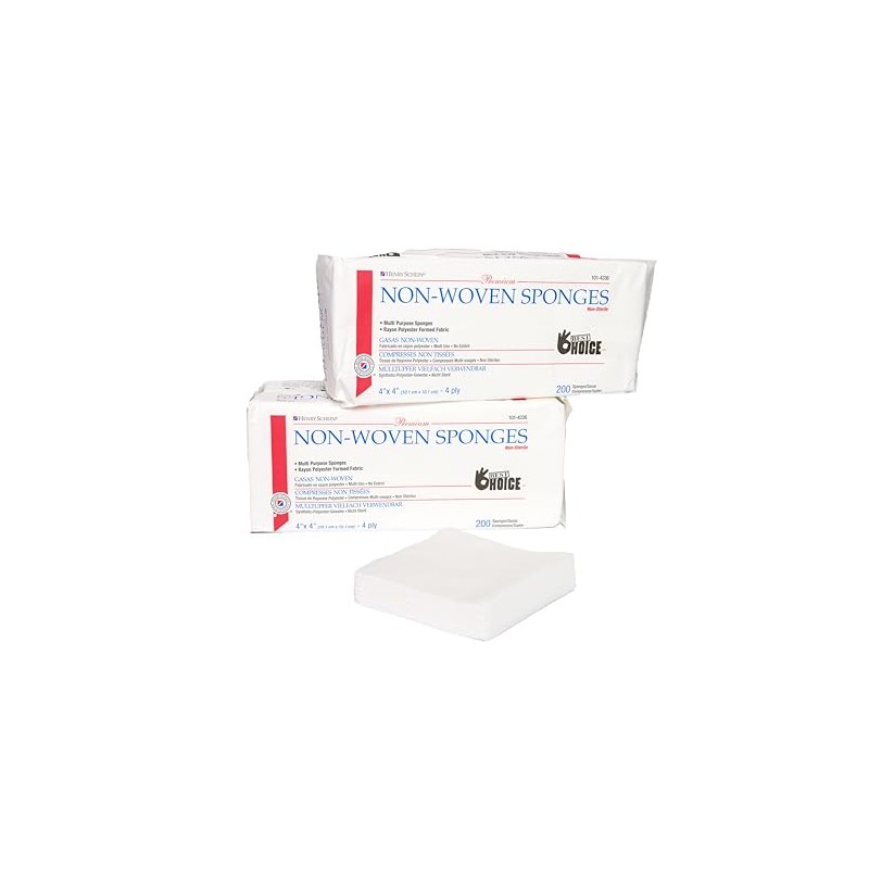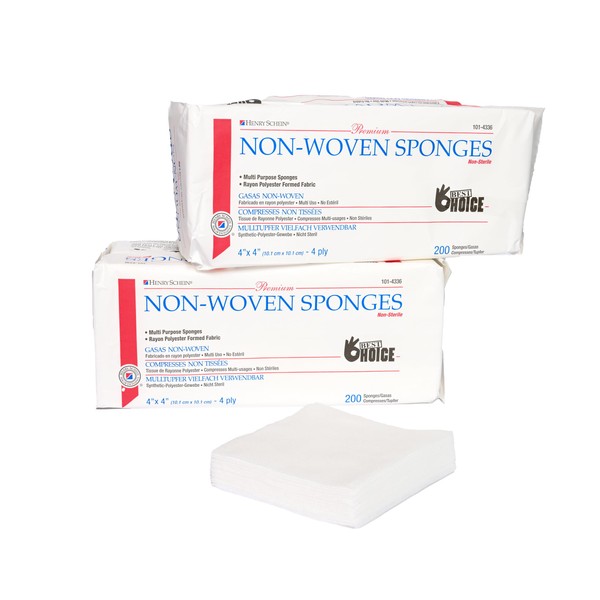 Henry Schein Premium Gauze, Rayon/Polyester Blend Non-Woven Sponges, 4 in x 4 in 4 Ply Non-Sterile, 4-Ply, 200/Pack - 10 Packs - Total 2000 Counts