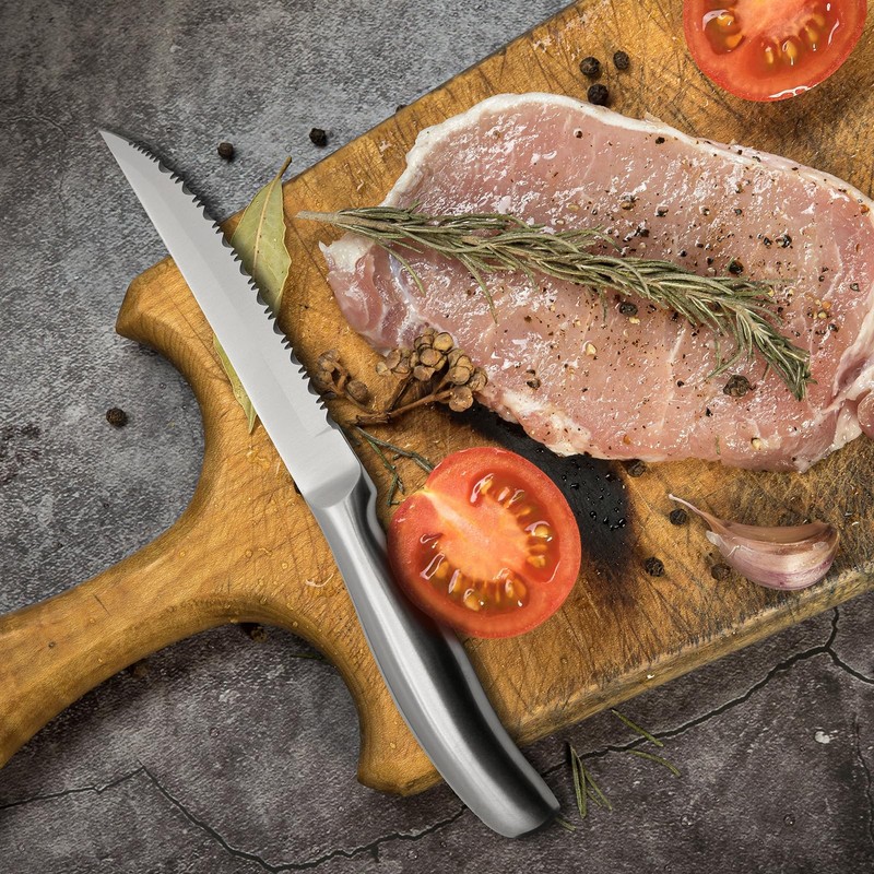 - The biggest highlight of the HENSOMG steak knife is that the blade has a special edge,which i call the moon edge. When using this steak knife to cut steak and bread,it makes it easier to cut steak and bread without taking up the meat. I believe the special blade will give consumers a different feeling.