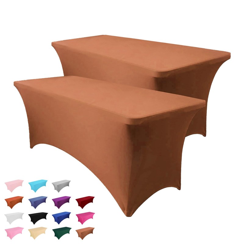 Heochy 2 Pack 6FT Brown Table Cloth for Rectangle Table Stretch Tablecloth Rectangular Fitted Spandex Table Covers 6 ft for Birthday, Cocktail, Wedding, Banquet Outdoor Party