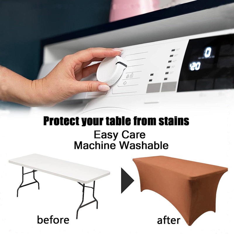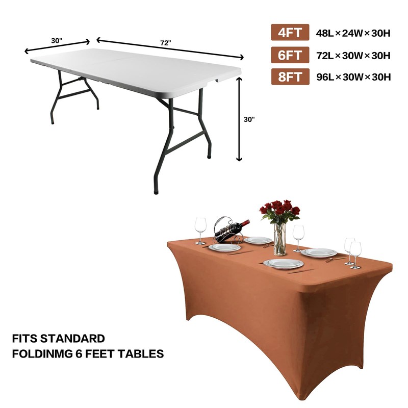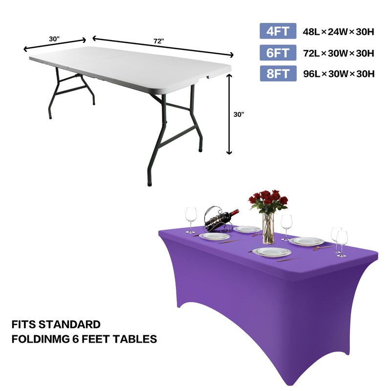 - LASTING AND STRETCHABLE - This rectangular table covers are stretchable, durable, wrinkle-free and stain resistant due to it was made from 90% Polyester material and 10% Spandex fabric.6FT: Fits a 72" Length x 30" Width x 30" Height table