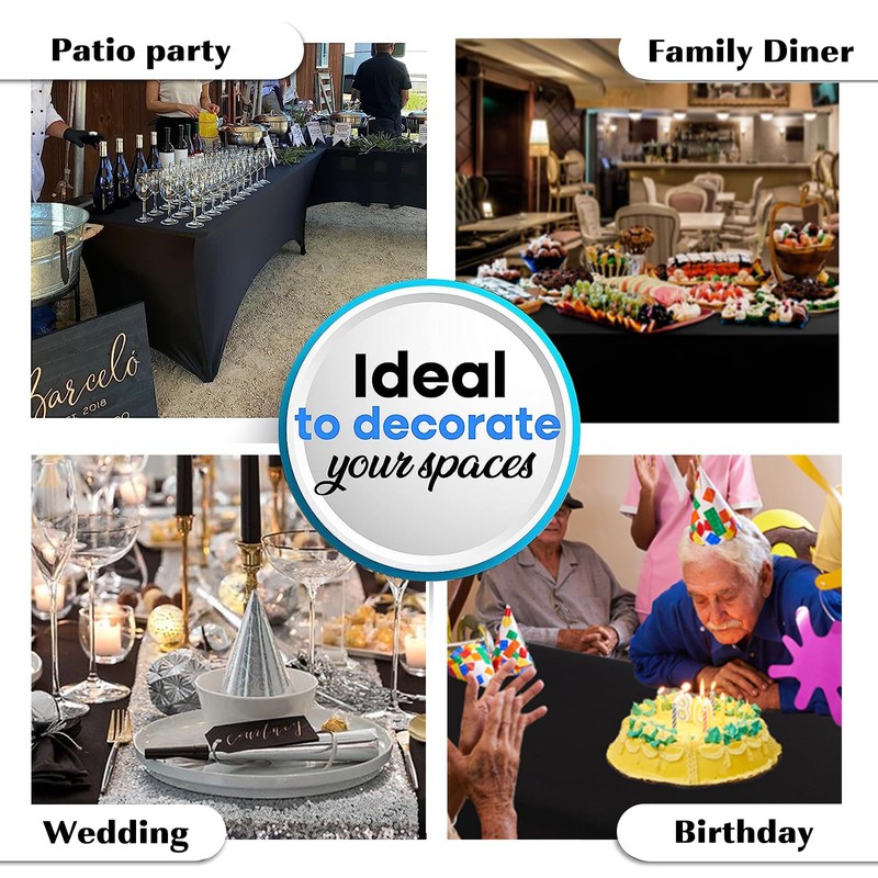 - EXCELLENT DESIGN AND STABLE FIT - stretch spandex material and pockets for legs are designed for keeping the tablecloth securely in place to fit your table better and make a flat & professional look so that your table cover won't slip around or billow with wind