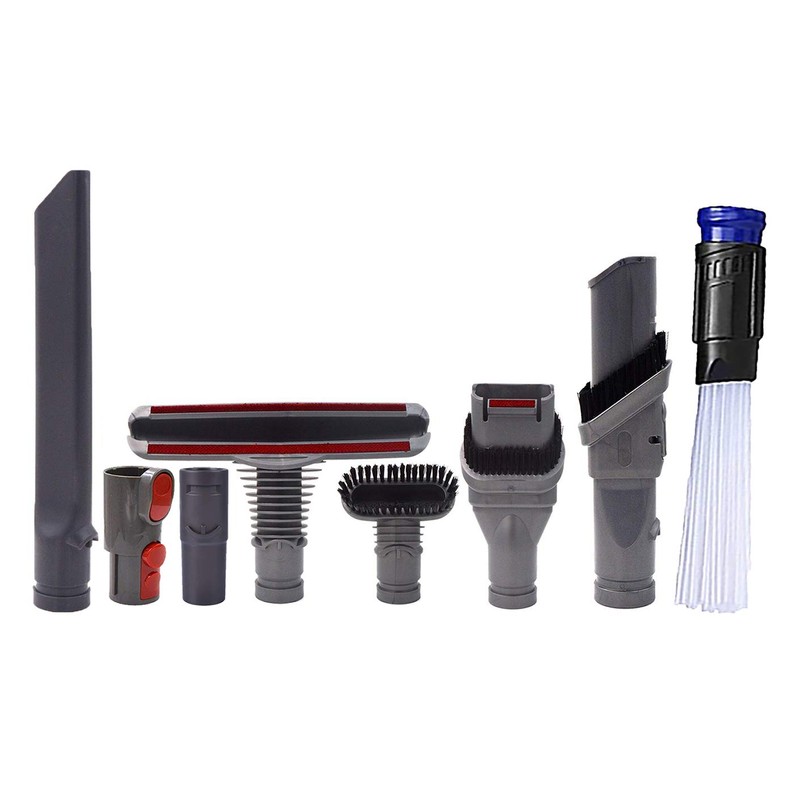 These high quality Replacement for Dyson Tool Set not only which can replace all the attachment kit, but also can perfectly clean your house. Adapter for V6: Adapter make it suitable for use with Dyson V6 cordless vacuum cleaners. Please first connect the adapter and then connect the vacuum attachments. Package List: Mattress Brush*1, Wide Nozzle Brush*1, Crevice Dust Brush*1, Stiff Bristle Brush*1,Connector Adapter*2 , Soft dusting brush*1 ,Duster Cleaner*1 If you have any question you can contact with us first ,we will resolve it as soon as possible