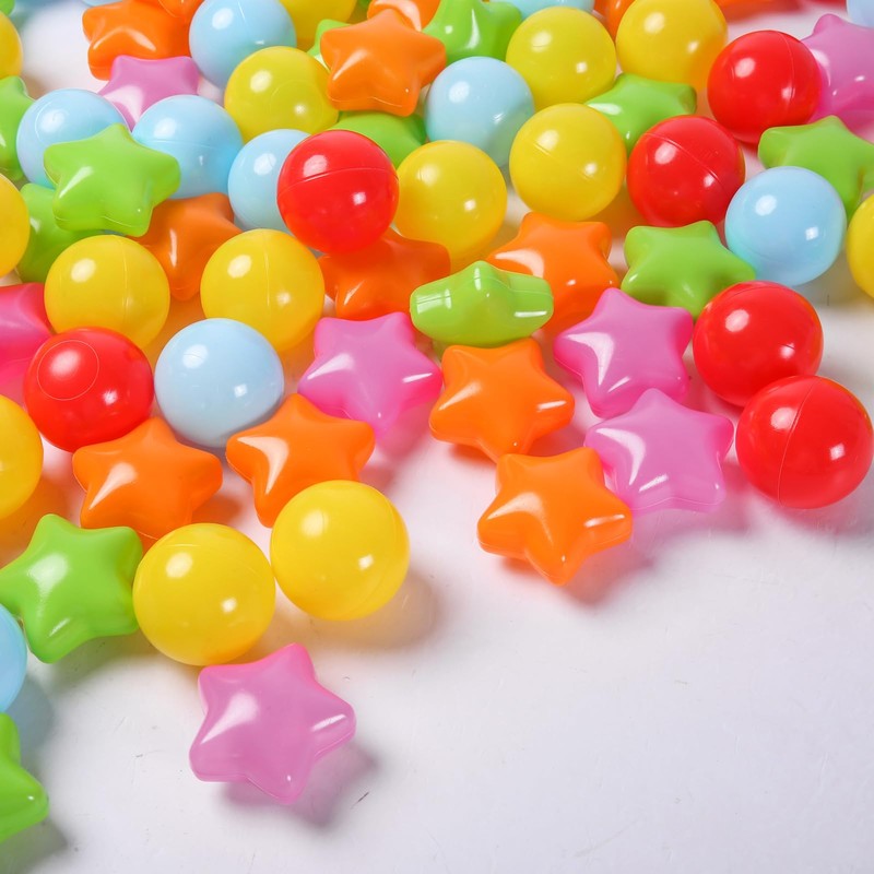 - SAFETY : Pack of 100balls (50 stars,50 balls) , Phthalate & BPA Free, Made from non-toxic material, non-recycled & non-PVC plastic, BPA free, Phthalate free and lead free.