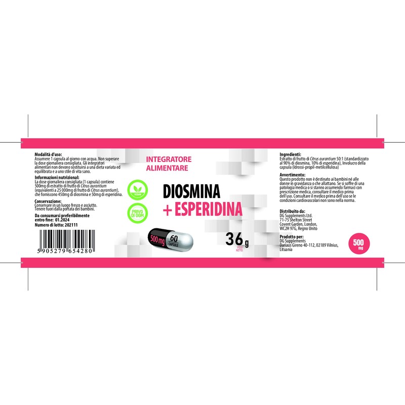 Hepatica Diosmin Hesperidin 500mg 60 Vegan Capsules, 3rd Party lab Tested, High Strength Supplement, No Fillers or Bulkers