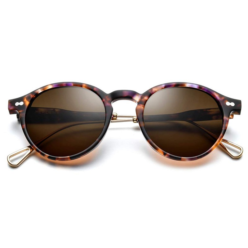 HEPIDEM Polarized Sunglasses for Men Women,Round UV400 Protection Acetate Frame (T9121 Leopard Frame Tea Lens), Leopard