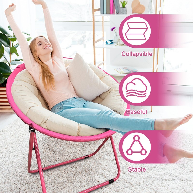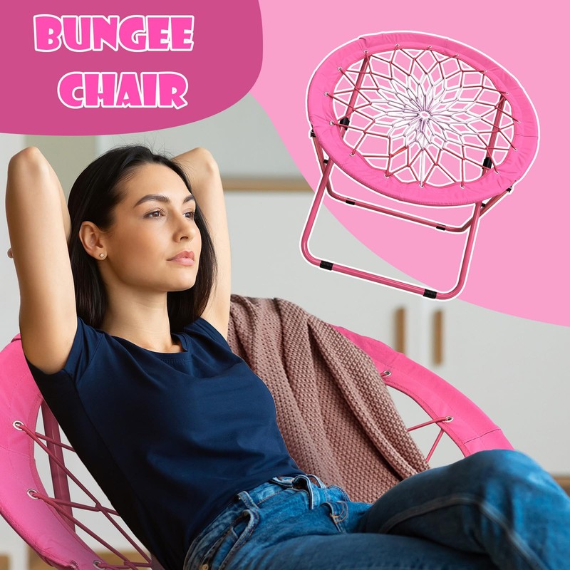 HEPINGONHE HEPINGONHE Bungee Chair Folding Saucer Chair Support Up to 225 Lbs Comfortable Relaxing Lounger Portable Outdoor Indoor Use Lightweight Durable Design (Pink)