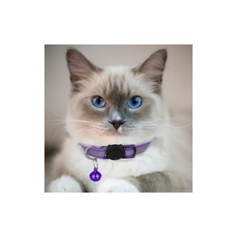 Hepplly 6-Pack Cat Collars Quick Release Reflective Kitten Collar with Bell (Purple)