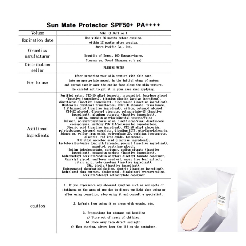 Lightness, Non-Greasy Formula For H.E.R.A SUN MATE PROTECTOR (50ml)