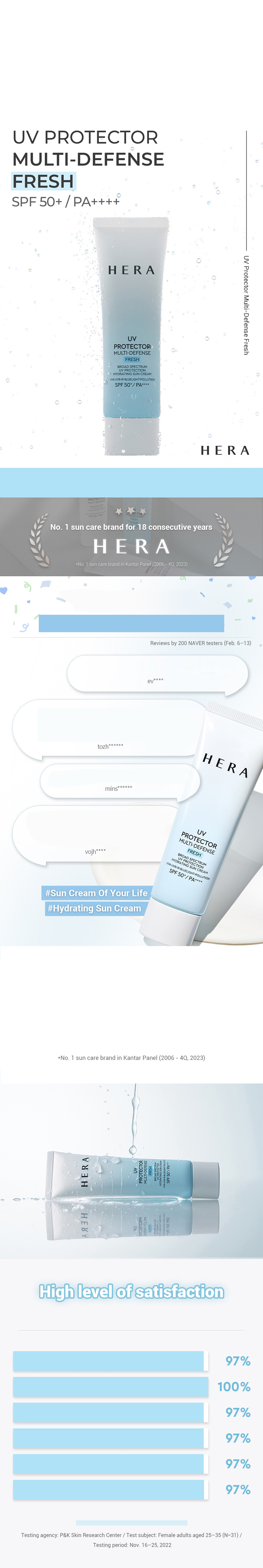 This product is SPF50+ PA++++. The moisture essence sunscreen of HERA which is the no.1 suncare brand for the past 18 consecutive years provides thin and even application on skin to provide ideal skin base. 97% satisfaction in soft application, thin application, quick absorption, moisturizing effect, moisturizing skin, and 100% satisfaction in even application. The light-fit formula is thinly and evenly applied on skin to provide ideal skin base. Provides soft and even application with thin adhesion like moisture coating to make ideal skin base. The effective quintet blockage of the 5-defense system provides strong skin protection against UV rays and harmful urban environments. The formula free from 7 harmful ingredients completed primary skin irritation test, low irritation test, and provides easy-wash even with primary cleansing.
