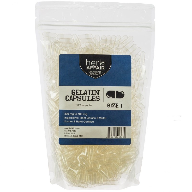 Herb Affair Clear Empty Gelatin Capsules Size 1-1000 Count – Holds 300-600mg - Great for Dogs and Kids Medication - Works with Most Capsule Fillers