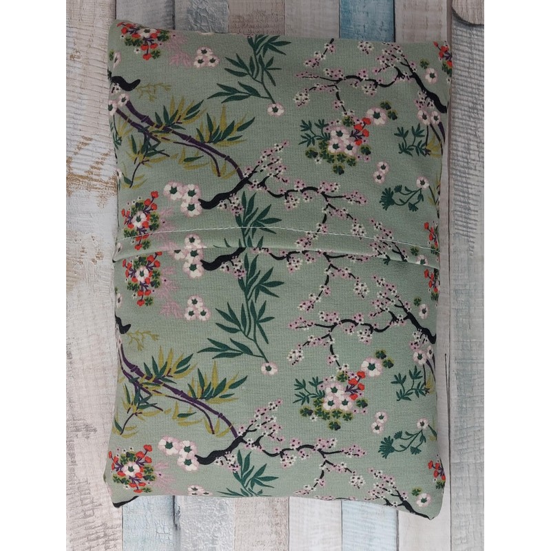 Herb Cushion with 8 Different Medicinal Herbs such as Hops, Melissa, Fennel, Mint, Rose Petals, Lavender, Hyssop, Quendel, Washable Cover, Motif 254 (Green with Flowers) Approx. 20 x 24 cm