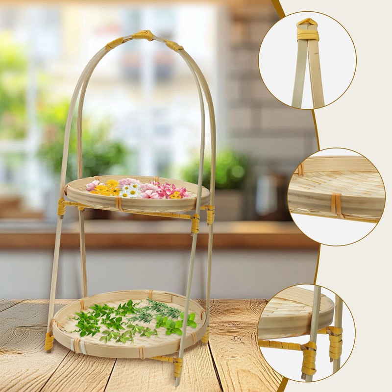 Herb Drying Rack - 2Tier Herb Drying Rack Small with Bamboo Tray, Herbs Flower Drying Rackz Small Stand Countertop Kitchen with 3 Layers Removable Bamboo Mesh Trays