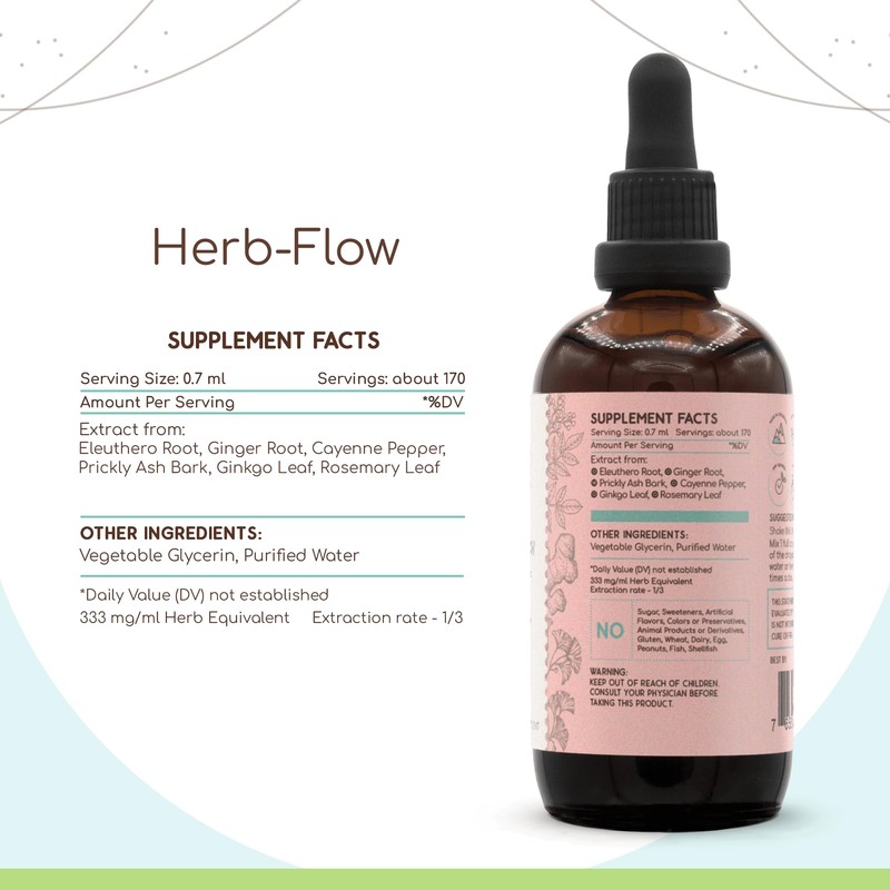 Herb-Flow B120 Alcohol-Free Tincture, Concentrated Liquid Drops: Cayenne Pepper, Eleuthero Root, Ginger Root, Ginkgo Leaf, Rosemary Leaf, Wildcrafted: Prickly Ash Bark. Circulation Blend 4 Fl Oz