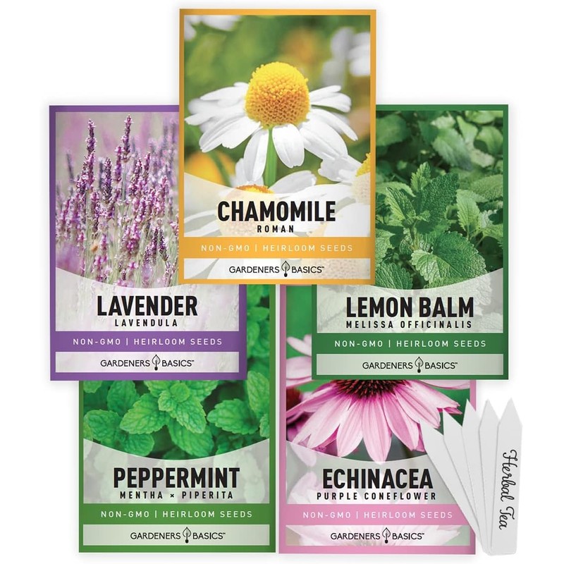 - Complete Indoor Herb Garden Kit for Hydroponic Systems – 5 heirloom tea seed packets, seed pods, plant domes, plant baskets, plant labels, and plant nutrition. Lavender, Chamomile, Lemon Balm, Peppermint and Echinacea heirloom seeds.