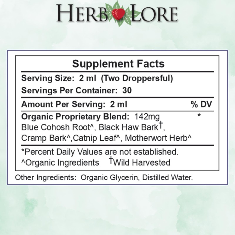 Herb Lore After Birthing Ease Tincture – Organic Certified Postpartum Drops for After Birth Cramping & Contractions with Cramp Bark, Blue Cohosh & Motherwort (2 fl oz)