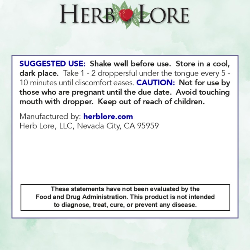 Suggested Use: Take 1-2 droppersful under the tongue every 5 to 10 minutes as needed until discomfort eases. Use as needed for postpartum relief and to help with after-birth contractions.