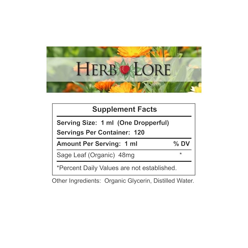 Herb Lore USDA Organic Sage Tincture – Alcohol-Free, Supports Milk Reduction ...