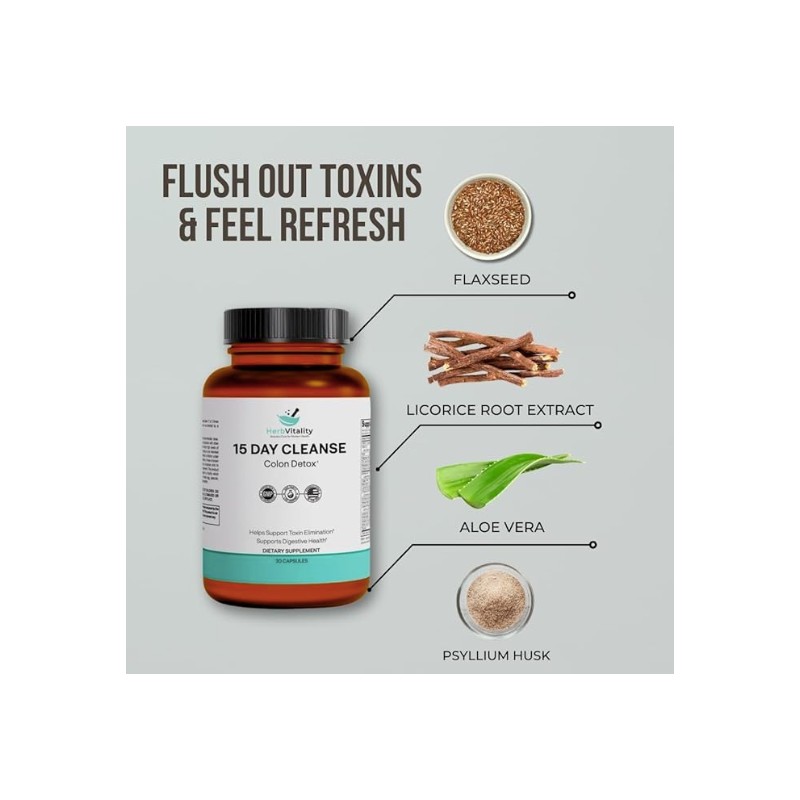 Herb Vitality 15-Day Colon Cleanse – Detox & Gut Health Support with Probiotics, Aloe Vera, Licorice Root & Psyllium Husk – Supports Digestive, Immune and Kidney Health for Men & Women - Pack of 2