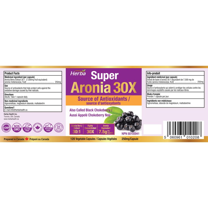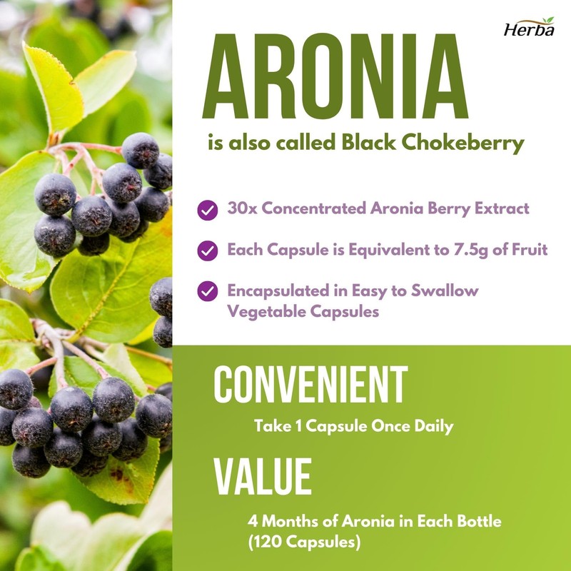 Herba Aronia Berry Extract – 120 Capsules | 7,500mg Equivalent Per Capsule - 30:1 Extract | Black Chokeberry Supplement | 100% Natural Aronia Berry Powder in Vegetable Capsule | Made in Canada