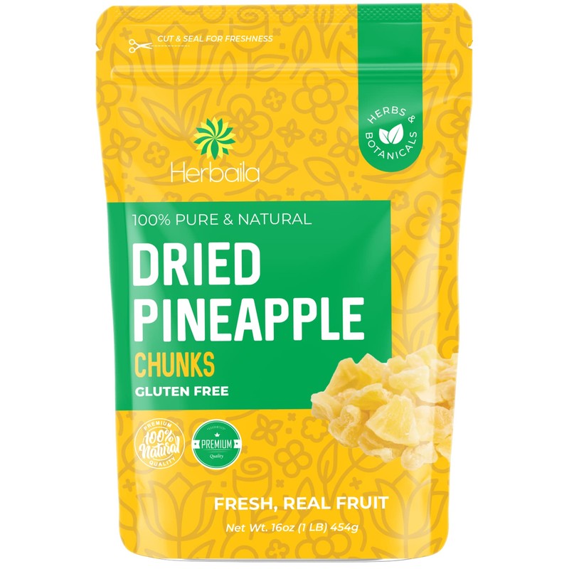 Herbaila Herbaila Dried Pineapple Chunks, 1 Pound. Dehydrated Pineapple Chunk, Dehydrated Pineapple Bulk, Dried Pineapple Bits. All Natural, Non-GMO, Lightly Sweetened Dried Pineapples, 16 oz.