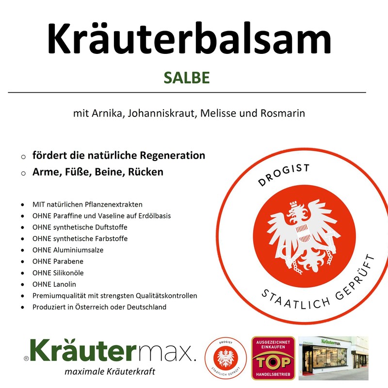- Proven: With Kräutermax you will receive natural herbal ointments made from high-quality raw materials of herbs cosmetics against the most diverse complaints