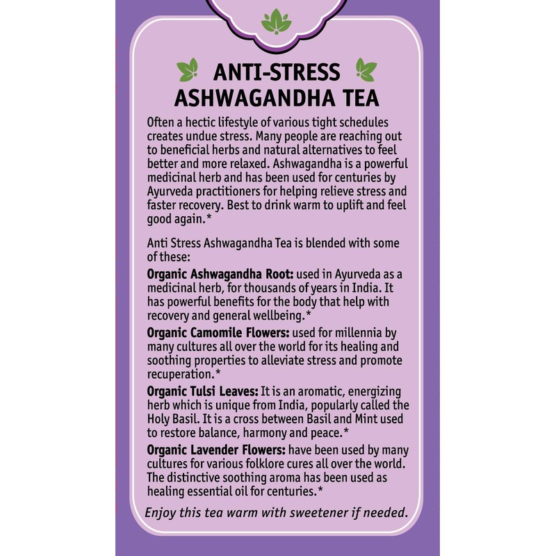 - NATURAL BENEFITS - Organic Chamomile is used by many cultures for various ailments mostly to help relax. Organic Ashwagandha is a prized herb used in Ayureveda for targeting stress. Organic Lavender Flowers are used by many cultures for their multiple benefits. Organic Clove is used extensively with a lot of positive factors to health.