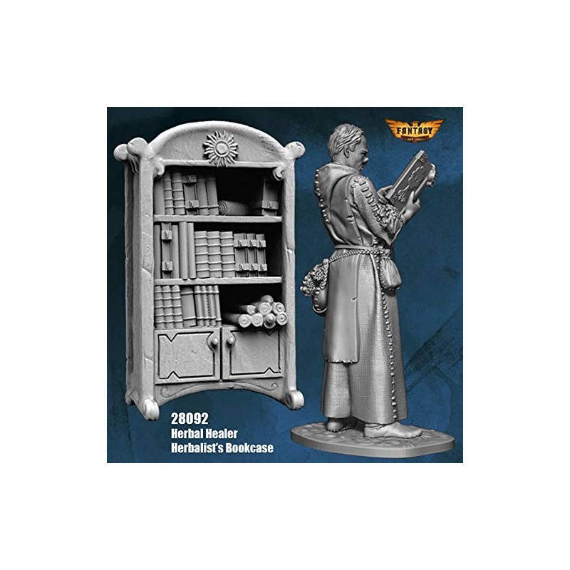 - Herbal Healer with Bookcase Figure Kit 28mm Heroic Scale Miniature Unpainted First Legion