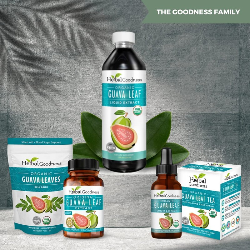 - Experience the natural benefits of Herbal Goodness Guava Leaf Extract Liquid Herbal Supplement, sourced from the exceptional Guava Superfruit. Guava leaves are renowned for supporting energy levels and supporting productivity thanks to their rich content of Vitamin C, potassium, antioxidants, iron, and lycopene.