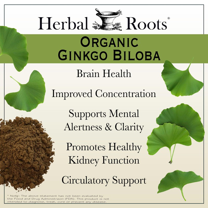 Herbal Roots Brain Health Duo, Organic Mushrooms and Organic Ginkgo Biloba, Powerful Boost for Brain Health, Non-GMO