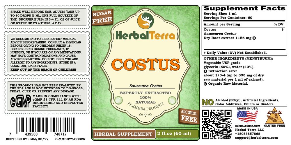 Herbal Terra LLC Costus (Saussurea Costus) Tincture Dried Root Liquid Extract...