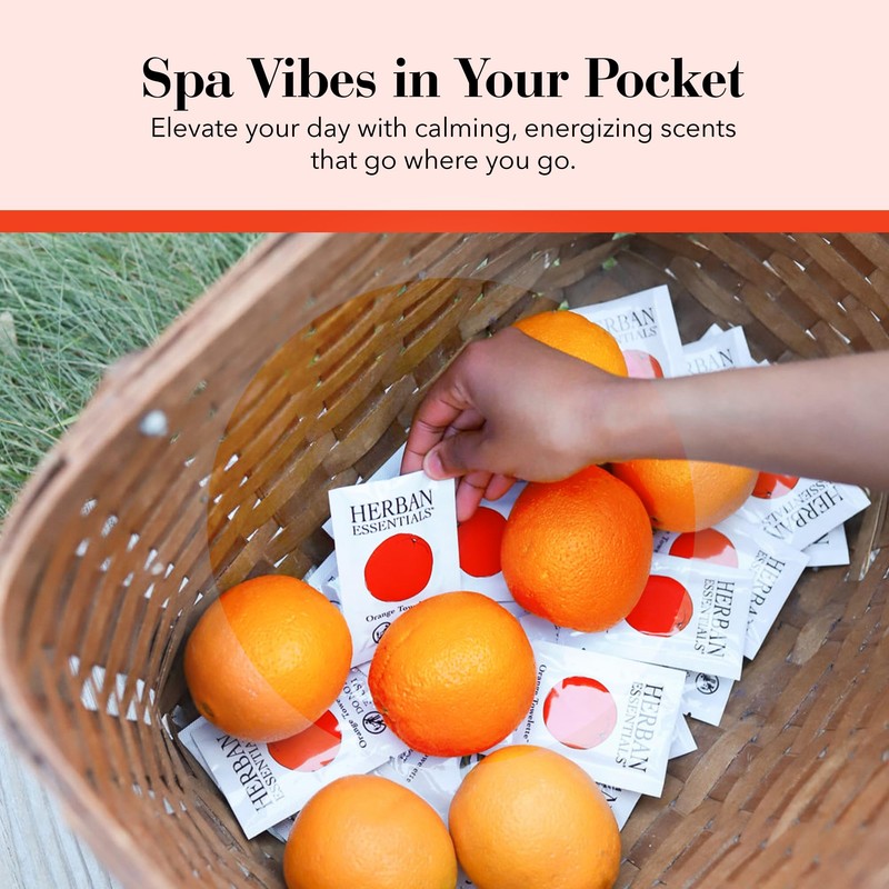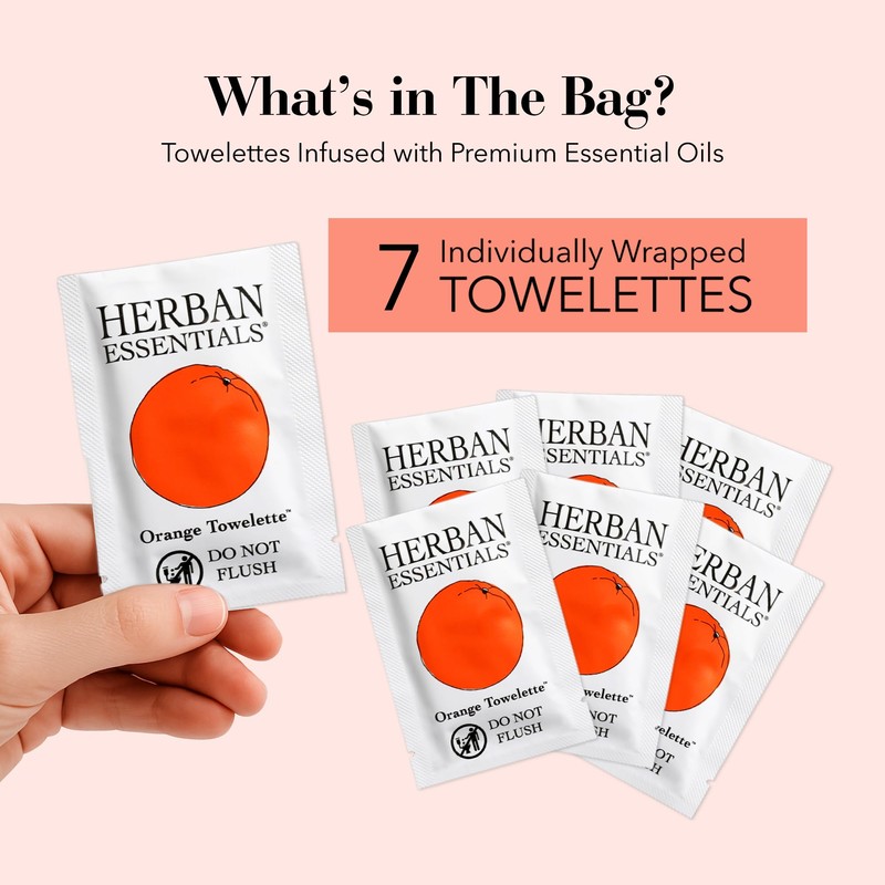 Herban Essentials - Orange Wipes & Towelettes - Essential Oil Wipes for Make Up, Hands, Face & Body - Travel Size Essentials & Toiletries - Natural, Individually Wrapped, Disposable & Moist (7 count)