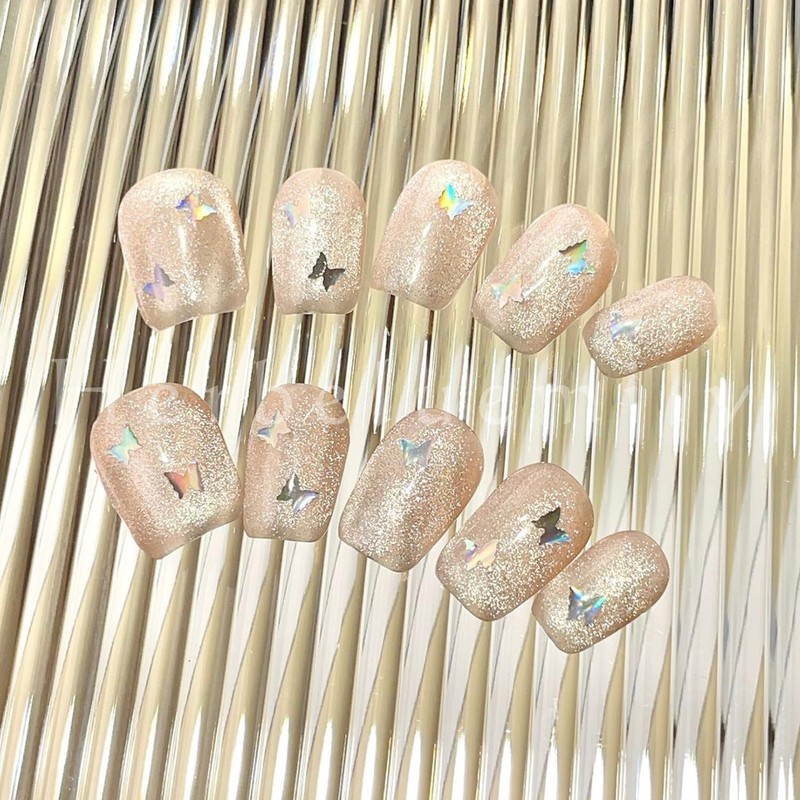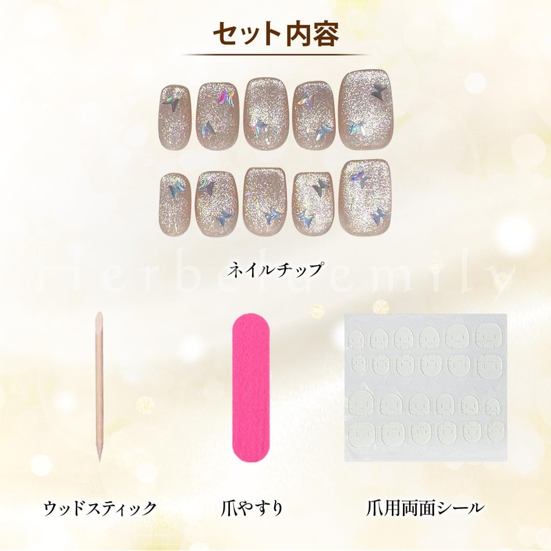 Herbeluemily Nail Tip, Press-On Nail, Easy and Easy False False Nail Self Nail D, Aurora x Butterfly, M