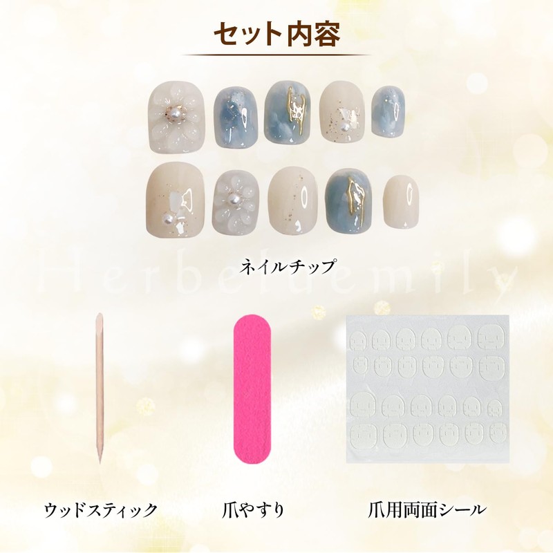 Herbeluemily Nail Tip, Short, Handmade, False Nails with Storage Box, Pack of...