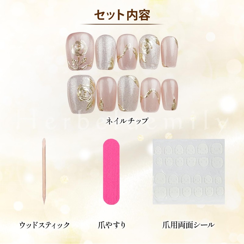 Herbeluemily Nail Tip, Short, Handmade, Storage Case, 10 Pieces, Gel Nail Style, Pink, A (Rose), L