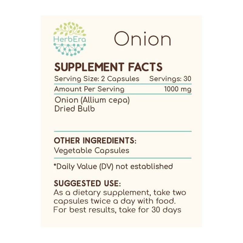 HerbEra Onion 60 Capsules, 500 mg, Onion (Allium Cepa) Dried Bulb (60 Capsules)