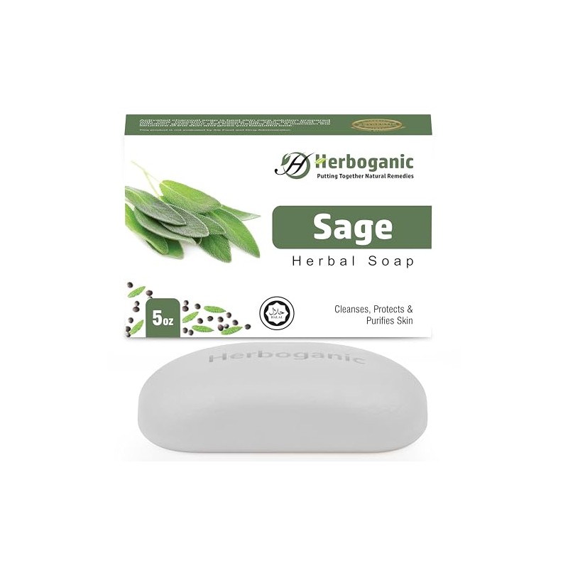 HERBOGANIC Sage Herbal Soap | Pack of 1 of 5oz soap Bar | Natural Soap Bar| Rejuvenating and Nourishing | Gentle for Men and Women