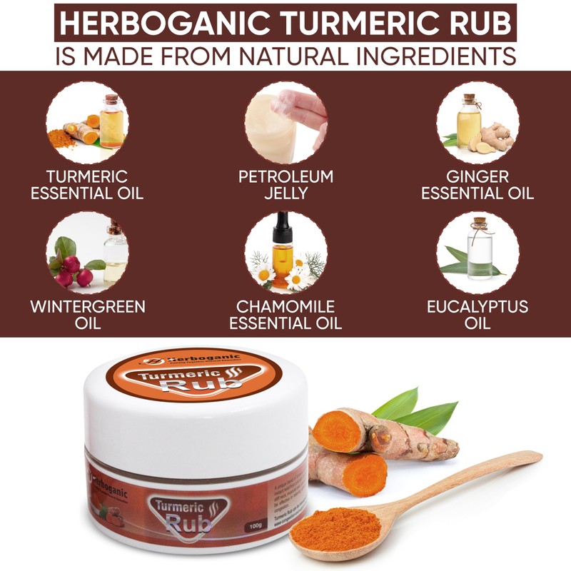 HERBOGANIC Turmeric Rub | Infused with Soothing Properties | Crafted to Provide Comfort to Joints, Muscles, Shoulders and Beyond | 3.5 oz