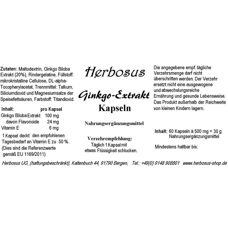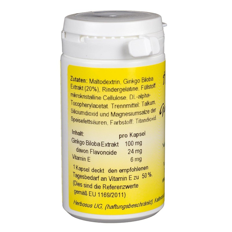 One capsule contains 100 mg ginkgo extract and covers 50% of the recommended vitamin E with 6 mg of vitamin E. Daily ration. These are the reference values according to EU 1169/2011.