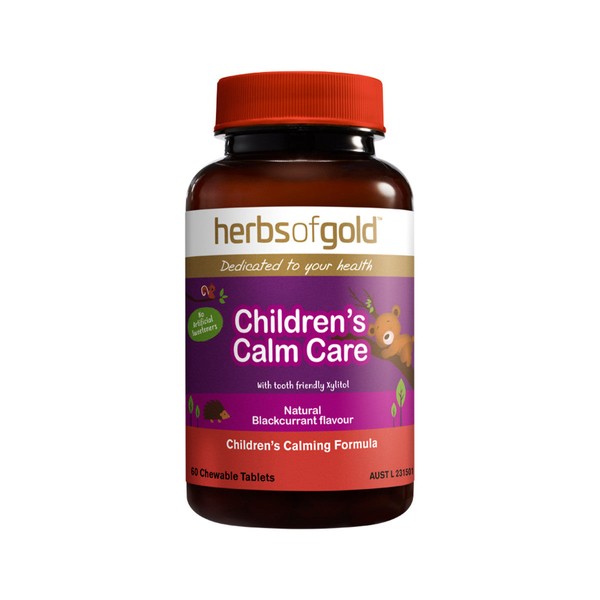 Herbs of Gold Children's Calm Care is a delicious blackcurrant flavoured chewable tablet that contains Chamomile, a herb traditionally used in Western herbal medicine as a calmative to soothe children.