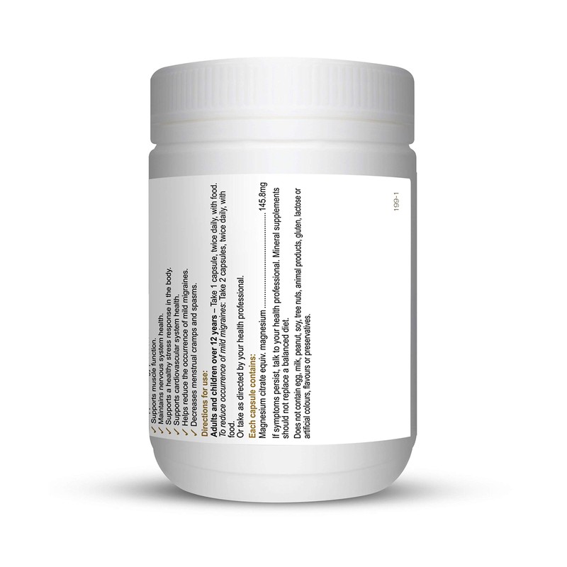- Ingredients: each capsule contains: magnesium citrate equiv. magnesium 145.8mg