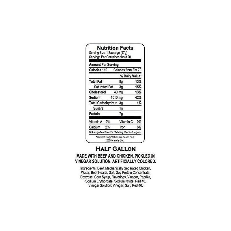 Herbs RED HOT Pickled Sausage (Half Gallon. Jar) 20 Count Beef & Chicken No Pork ( From Candy World)