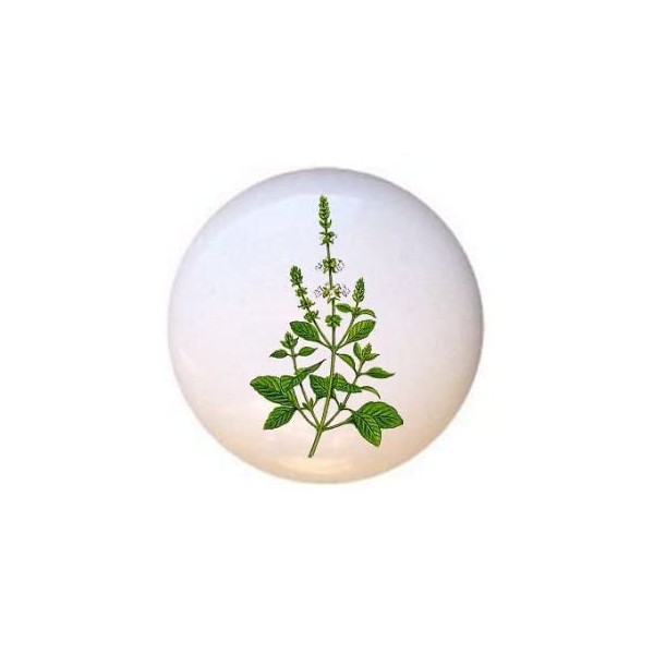 Herbs Spices Kitchen Cook Cooking Bake Baking Decorative Ceramic Dresser Drawer Pulls Cabinet Cupboard Knobs (Basil)