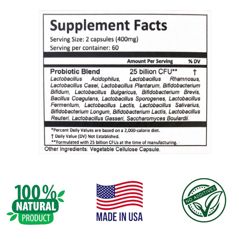 Support your digestive health, gut balance, and immune system with ProbioticGut Max Strength. This advanced probiotic blend features 25 billion CFU (Colony Forming Units) and 18 carefully selected probiotic strains to promote a healthy gut flora. Our vegetarian capsules are designed to be shelf stable, ensuring the probiotics remain potent and effective. Safety Information: Consult a healthcare professional before use if you are pregnant, nursing, or taking medication. This product is not evaluated by the FDA and is not intended to diagnose, cure, treat, or prevent any disease. Keep out of reach of children. Store in a cool, dry place.