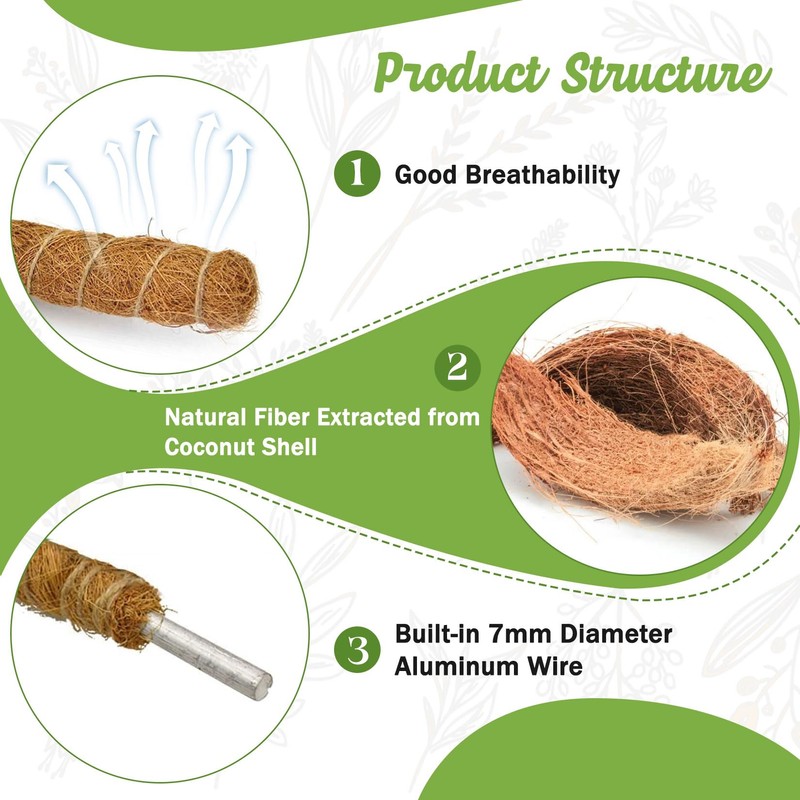 - Bendable: Unlike other coconut rods, our coconut sticks have built-in aluminium wires with 7 mm diameter. The diameter of the aluminium wires is thicker, so they are not only bent and plastic, but also ensure good stability to adapt to different climbing paths. Plants grow and help the plants grow better.