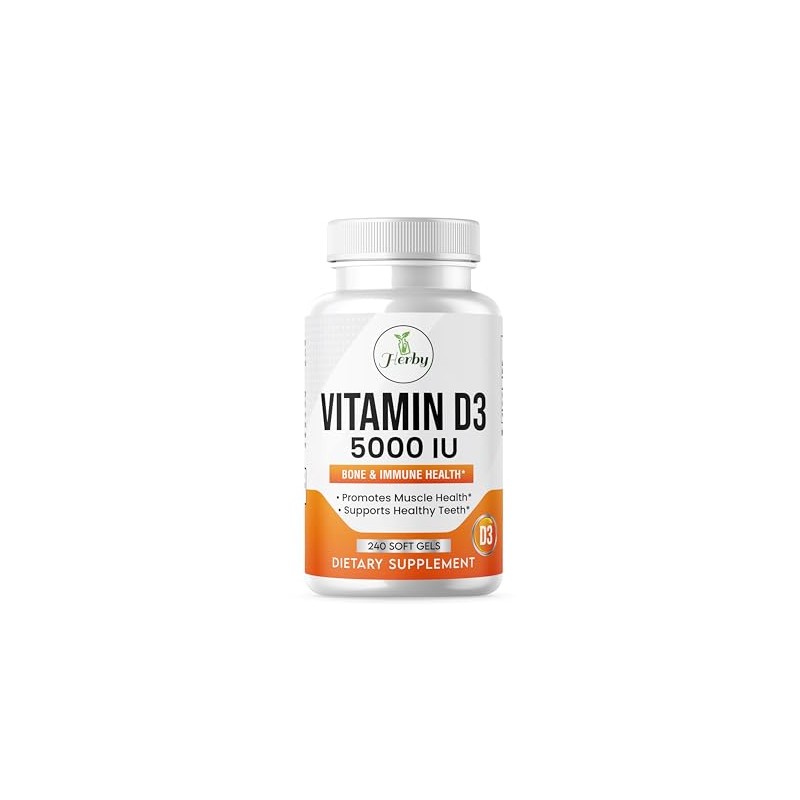 Herby VITMAIN D3 5000 IU, Bone Health and Immunity Support Supplement, Mood Booster - Halal, 240 Count SOFT GEL (Pack of 1), Clear